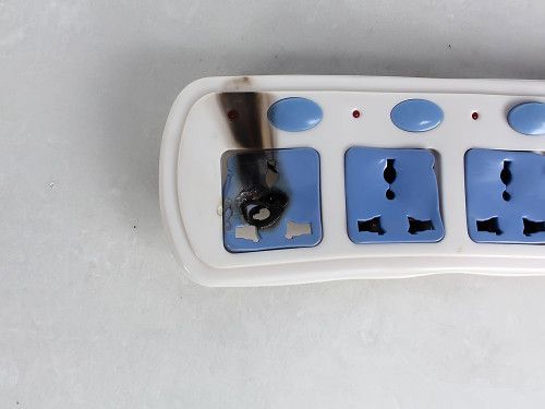 ?最后讓我們來看看一款已經(jīng)被整個燒融的排插,讓大家更清楚明白排插的選用材料的重要性。