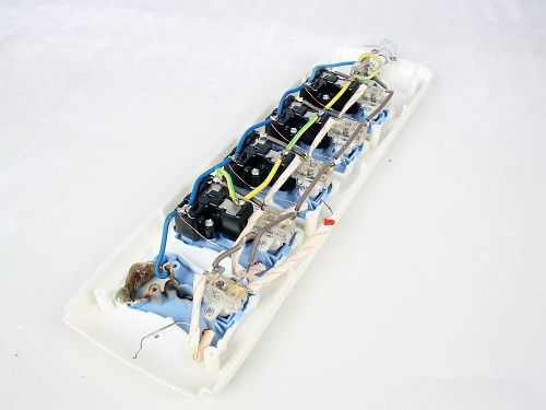 打開這款排插的內(nèi)部后更讓人觸目驚心,里面的設(shè)計簡單到讓人不能相信它可以擔(dān)當(dāng)起家庭生活中的守護神的職責(zé)??梢钥吹奖粺诘牟糠值你~套整個外露出來,已經(jīng)不能插入正常的插頭,極其容易發(fā)生漏電現(xiàn)象。