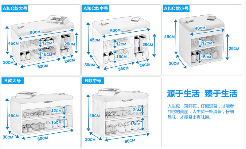 1、滿足這些需求,你需要一個既能放鞋,又能坐,還能臨時存放快遞的柜子,可以買,亦可以訂制。尺寸可參考某寶的一款鞋凳的尺寸。